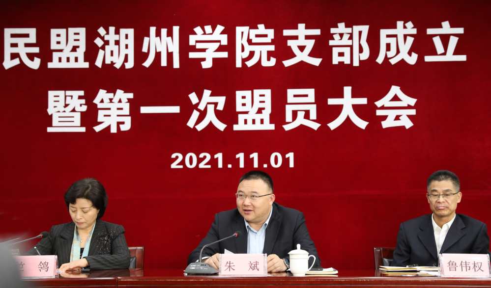 朱斌代表湖州学院党委向大会的召开表示热烈祝贺,他表示民盟湖州学院支部是湖州学院今年4月16日挂牌以来成立的第一个民主党派支部,也是湖州学院人数最多的一个民主党派。他提出三点希望:一要牢牢把握正确的政治方向,坚持中国共产党的领导,始终做到同心同德、同心同向,同心同行;二要坚持履职尽责,全面彰显使命担当,立足本职岗位建功立业;三要坚持固本强基,努力成为理论上清醒、政治上坚定、组织上巩固、制度上健全的标杆支部,着力建成示范样本。他强调,学校进入快速发展时期,民盟支委会委员要带领全体盟员立足岗位、尽职尽责,积极作为,发挥作用,为我校加快建成“全国知名、特色鲜明”的高水平应用型大学贡献智慧和力量。