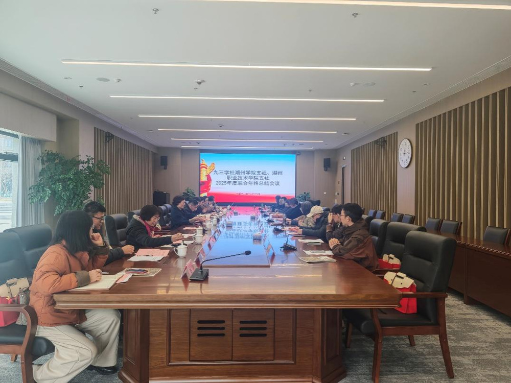 2026年1月18日,九三学社湖院支社联合湖职院支社在湖州学院新校区召开了2025年终总结会。会议旨在深入学习贯彻中共二十届四中全会及中央、省、市经济工作会议精神,全面总结过去一年工作,凝聚共识,激发干劲。湖州市政协副主席、九三学社湖州市委会主委高东,湖州师范学院副校长、九三学社湖州市委会副主委李庆峰,九三学社湖州市委会专职副主委徐俊丽,湖州学院、湖州职业技术学院统战部领导出席会议,两校支社全体社员参加了会议。